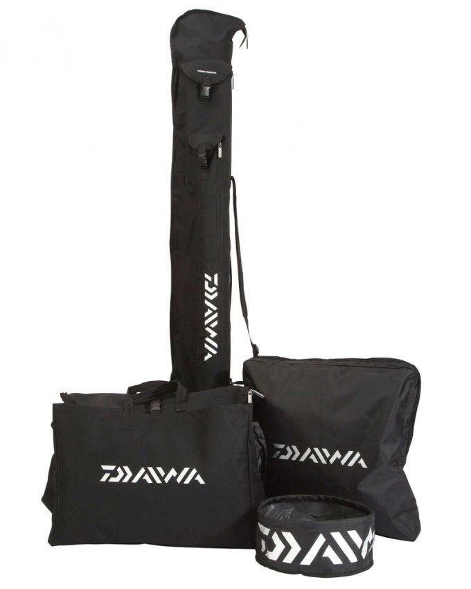 This luggage set includes 187cm Long 5 Tube Holdall, carryall with keepnet bag, padded reel case, groundbait bowl.
