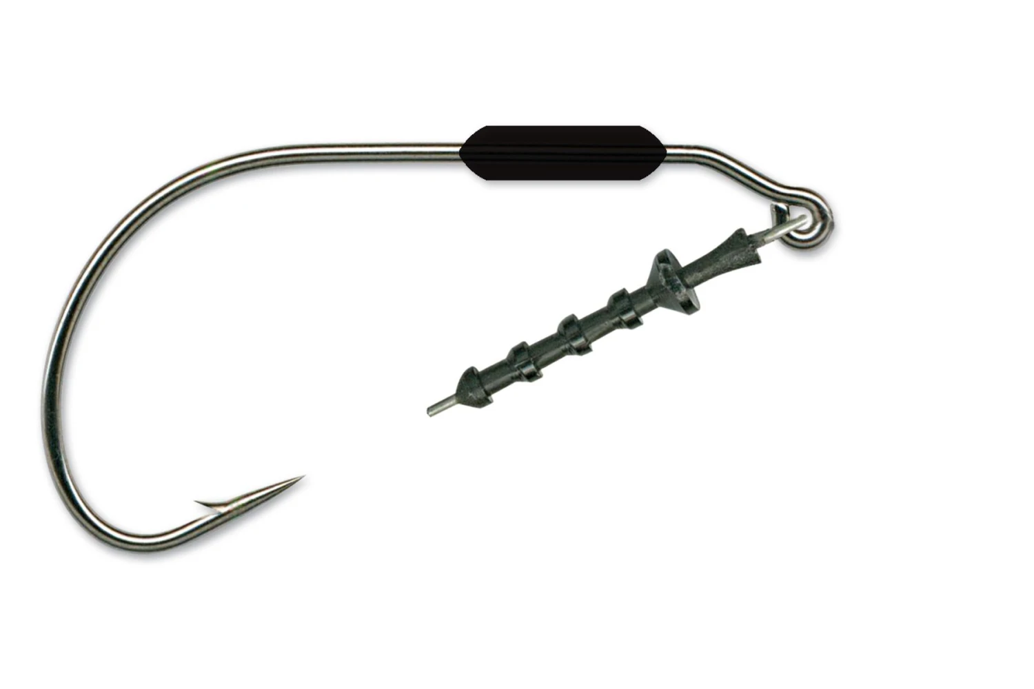 Mustad Power Lock Plus Weighted EWG hooks are the right tool when you’re using thick plastic baits since the body of the bait can be pressed down farther, exposing more of the hook point for a deep, solid hookset. The Mustad Power Lock Hooks feature a weight molded on the shank of the hook and a long plastic keeper on the eye for a very clean, neat, compact rig. Use the Power Lock Hook for soft jerk baits and Senkos or your favorite plastic worm.